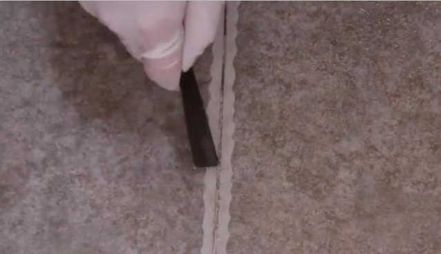 1、用铲刀配合毛刷子,将瓷砖的表面清理干净,特别是缝隙刮干净后,用一点堵漏王做填缝。