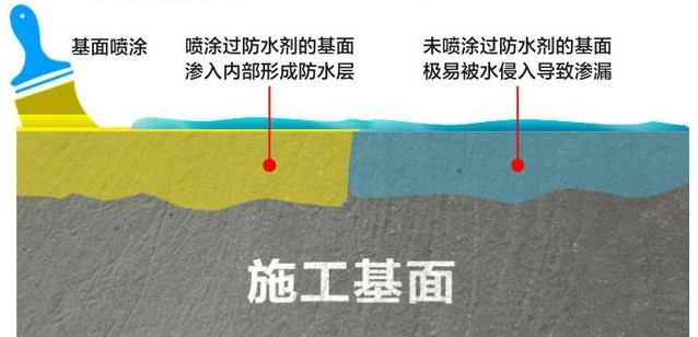 2、确保地面无积水,使用喷壶将防水剂喷在漏水的地方,或者是用毛刷均匀涂刷。