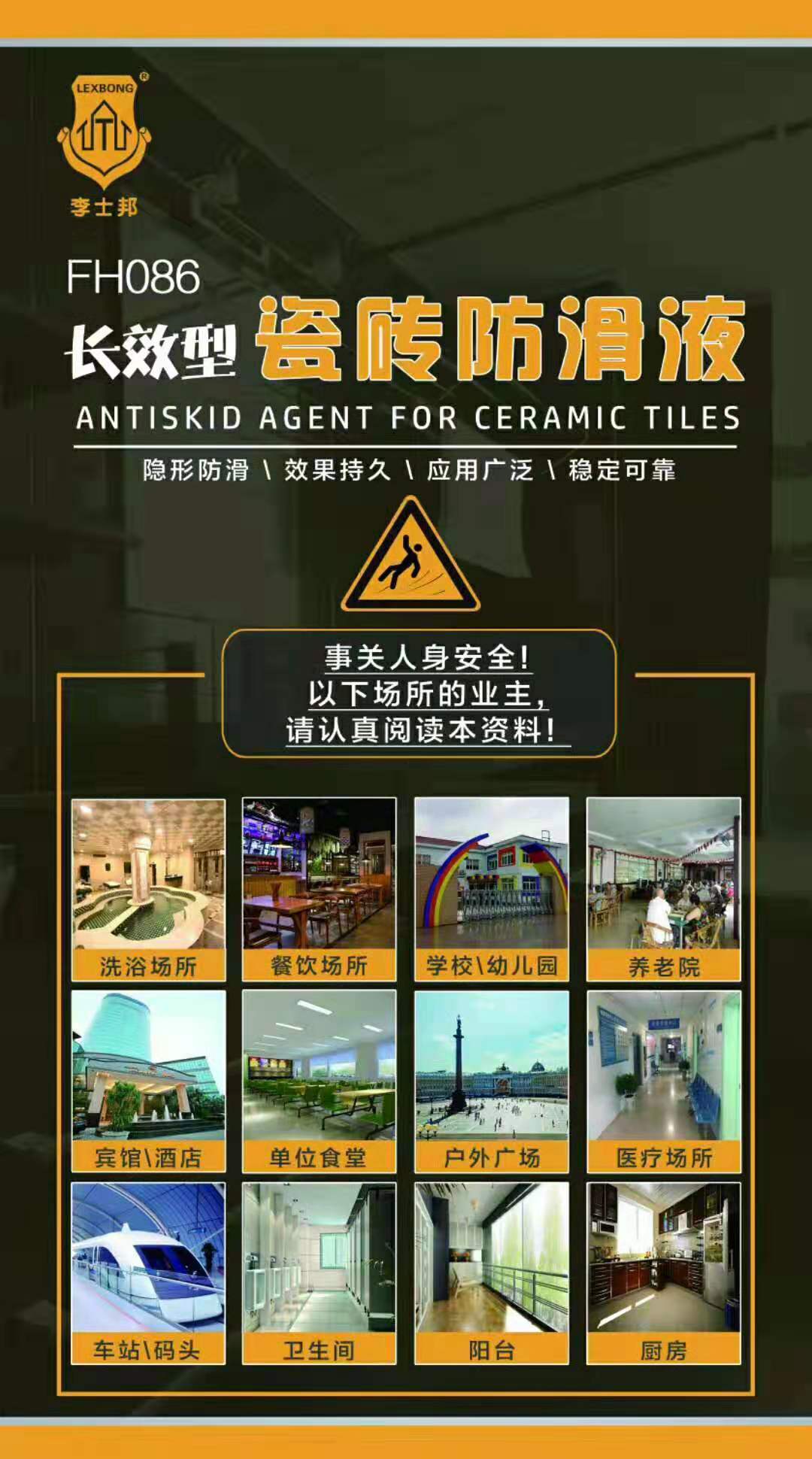 由此可发现,无论是公共场所,还是居家生活,地面防滑问题已经迫在眉睫。地面滑倒意外事故层出不穷,给我们的儿童、老人也带来了严重的人身伤害和经济损失, FH086长效型瓷砖防滑液给出了居家安全和公共场所安全的地面防滑解决方案。